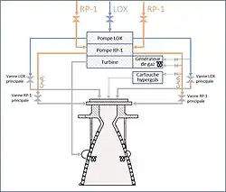 | Type moteur | Moteur-fusée à ergols liquides cryogéniques et cycle ouvert (générateur de gaz) |