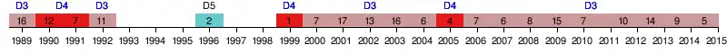 1989-1992 2000-2004 2006-2015 |