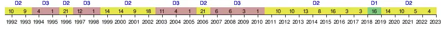 | 1991 | 7e | 40 | 34 | 16 | 8 | 10 | 51 | 31 | +20 | ||