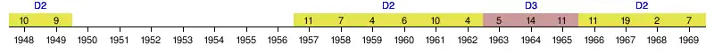 1948-1949 1957-2002 2005-2006 2008-2012 |