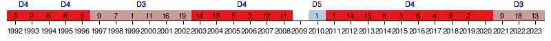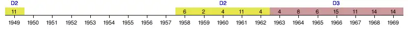 1949 1958-1969 1994-2002 2020- |