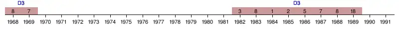 | 1969 | 7e | 31 | 30 | 11 | 9 | 10 | 29 | 28 | +1 | ||
