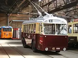 Drapeau de la Belgique Vlaams Tram- en Autobusmuseum (VlaTAM) 453[2] Véhicule repeint aux couleurs du réseau anversois pour figurer un FN TB III utilisé sur ce réseau[2].