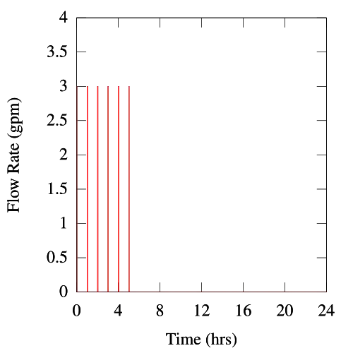 Le facteur énergétique pour les chauffe-eau résidentiels est déterminé en utilisant les résultats du test d'utilisation simulée de 24 heures. Au cours de l'essai, 64,3 ± 1,0 gallons d'eau sont prélevés sur le chauffe-eau en six tirages équidistants qui commencent à une heure d'intervalle. Le débit d'eau chaude pour chaque tirage est de 3,0 ± 0,25 gallons par minute. Après le début du dernier tirage, une période d'attente de 18 heures suit. Pendant l'essai, les conditions d'essai doivent être utilisées à une valeur et à une précision spécifiées. Les chauffe-eau à pompe à chaleur (HPWH) ont des valeurs différentes spécifiées pour la température de l'air ambiant et l'humidité relative[5].