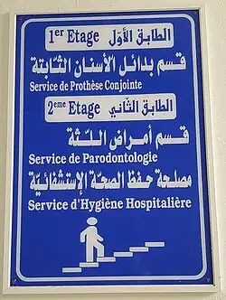 - ↑ « Décret n°2009-2347 du 12 août 2009, relatif à la spécialisation en médecine dentaire et au statut juridique des résidents en médecine dentaire », Journal officiel de la République tunisienne, no 67, , p. 2453 (ISSN 0330-7921, lire en ligne [PDF]).