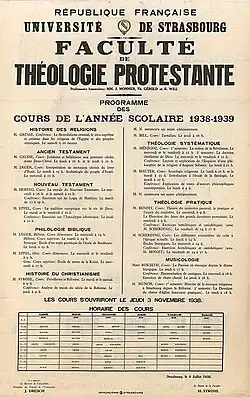 - ↑ Matthieu Arnold, La Faculté de Théologie Protestante de l'Université de Strasbourg de 1919 à 1945, Strasbourg, Association des publications de la Faculté de Théologie Protestante, coll. « Travaux de la Faculté de Théologie Protestante », 1990, p.21.