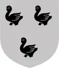 Description: d'argent chargé de trois merlettes de sable[51] |