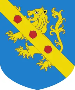 Les armes des Leoni se composent d'azur avec un Lion d'or et une bande du même métal chargée de trois roses de gueules brochant sur le tout.
