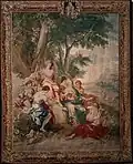 Tapisserie d'Évrard Leyniers, Neptune fait naître le cheval en frappant la terre de son trident, d'après un carton de Jacques Jordaens, vers 1650-1660.