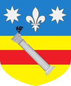 Les armes des Martinelli se blasonnent ainsi coupées d'azur et d'argent, l'azur chargé de deux étoiles d'or en chef et une fleur de lys d'argent en cœur, l'argent d'une face ou cotice de gueules et une colonne avec sa base et son chapiteau d'argent en bande et brochant sur le tout.