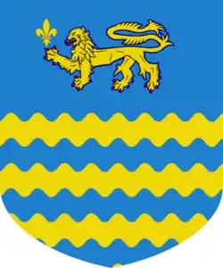 Les armes des Mezo se blasonnent ainsi d'or à trois fasces ondées d'azur au chef du même chargé d'un lion léopardé du champ tenant une fleur-de-lis du même.