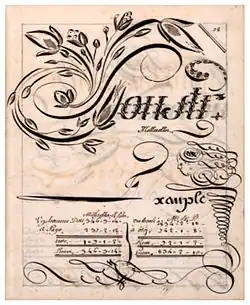 - Cours d’arithmétique par Simian fils aîné, 1771. Papier, 190 x 155 mm, II-180-[11]f., reliure de maroquin rouge et tranches dorées. Chaque feuillet présente sur le recto des calculs entourés de traits de plume avec des têtes. Au début, portrait du calligraphe debout portant une grappe de raisin et un cep de vigne. Arras BM : Ms. Advielle 361. Ce manuscrit avait fait l’objet d’une question de Victor Advielle dans L'Intermédiaire des chercheurs et curieux, 1898, dans laquelle il demandait des renseignements sur ce calligraphe.
