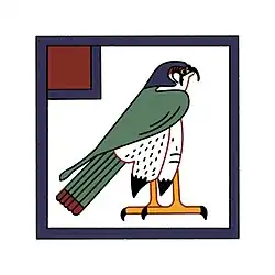 | Ḥr : | « Horus, le roi »[3]. Ce terme est encore souvent translittéré Ḥwt-Ḥr (voir O6). |
