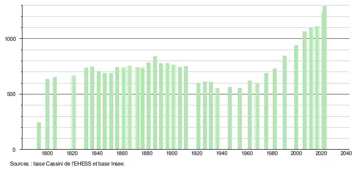 - ↑ Fiches Insee - Populations de référence de la commune pour les années 2006, 2007, 2008, 2009, 2010, 2011, 2012, 2013, 2014, 2015, 2016, 2017, 2018, 2019, 2020, 2021 et 2022.