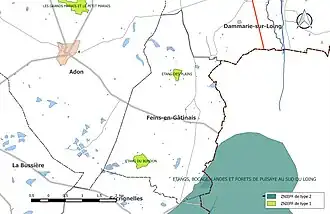 L’inventaire des zones naturelles d'intérêt écologique, faunistique et floristique (ZNIEFF) a pour objectif de réaliser une couverture des zones les plus intéressantes sur le plan écologique, essentiellement dans la perspective d’améliorer la connaissance du patrimoine naturel national et de fournir aux différents décideurs un outil d’aide à la prise en compte de l’environnement dans l’aménagement du territoire. Le territoire communal de Feins-en-Gâtinais comprend trois ZNIEFF[INPN 4].