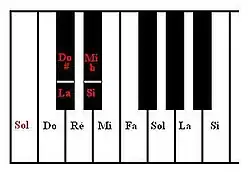 La touche antérieure est attribuée à une note diatonique plus grave, la partie postérieure permet de jouer la note chromatique correspondant normalement à la position de la touche. D'autres variantes sont possibles : sur certains instruments italiens, on retrouve les combinaisons suivantes pour les parties postérieures et antérieures : Mi♭/ Ré♯ et Sol♯ / La♭. Ces notes sont équivalentes sur des claviers tempérés, mais peuvent être à des hauteurs différentes sur des claviers enharmoniques (voir Tempérament mésotonique). Cela permet à certains intervalles, comme par exemple les tierces majeures, d'être plus proches de la hauteur idéale et de sonner plus juste.