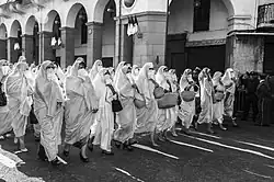 Le haïk, ample vêtement traditionnel féminin algérien, permet à certaines résistantes de s'en servir comme moyen de transport afin d'y acheminer des armes ou des lettres. De plus, certaines d'entre elles s'habillent à l'occidentale pour passer pour des Européennes et pour poser plus facilement des bombes dans les quartiers européens et dans les cafés français. Parmi elles, Djamila Amrane (1939-2017), Hassiba Ben Bouali (1938-1957), Djamila Bouhired (1935- ), Djamila Boupacha (1938- ), Zohra Drif (1934- ) et Baya Hocine (1940-2000) figurent parmi les poseuses de bombe les plus célèbres. Malgré les revendications du FLN qui demandent que ses combattants faits prisonniers soient traités comme des détenus politiques, le gouvernement français les considère comme des prisonniers de droit commun et les condamne à la peine capitale.