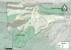 - la « forêt de Boucheville » (4 928 ha), couvrant 8 communes dont deux dans l'Aude et six dans les Pyrénées-Orientales[23] ;