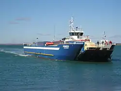 Un ferry (de l'anglais ferry), ferry-boat (littéralement « ferry-bateau »), transbordeur ou traversier[1] (au Canada francophone et à Saint-Pierre-et-Miquelon[2]) est un bateau ayant pour fonction principale de transporter des véhicules routiers ou ferroviaires avec leur chargement et leurs passagers dans des traversées maritimes.