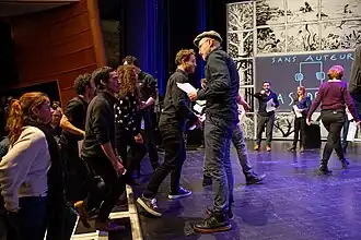 Marion Montaigne, Younn Locard, Florent Grouazel, Nicole Claveloux, Yoshiharu Tsuge, Emmanuel Guibert, Stéphane Beaujean, les auteurs et autrices sur la scène de la cérémonie des Fauves, Yoon-sun Park, des lectrices de Sacrées Sorcières de Pénélope Bagieu. | ||||||||