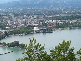 La scène du lac (allemand : Seebühne) est la plus grande scène flottante au monde et peut accueillir près de 7 000 spectateurs.