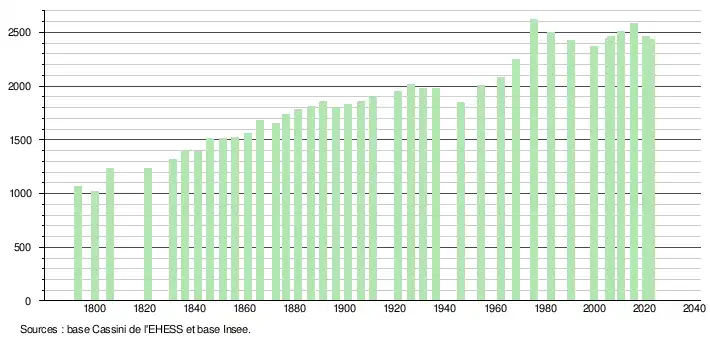 - ↑ Fiches Insee - Populations de référence de la commune pour les années 2006, 2007, 2008, 2009, 2010, 2011, 2012, 2013, 2014, 2015, 2016, 2017, 2018, 2019, 2020, 2021 et 2022.