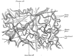 - (en) Cet article est partiellement ou en totalité issu de l’article de Wikipédia en anglais intitulé « Elastic Fiber » (voir la liste des auteurs).
