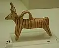 | Figurine animale avec boucle dorsale | Figurine en terre cuite peinte. | 1400 à 1300 av. J.-C. HR IIIA |
