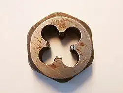 Les filières manuelles sont généralement de forme cylindrique. La dureté est adaptée au type de matériau à fileter. Les filières hexagonales sont conçues pour une reprise de filetage sur chantier.
