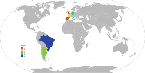 L'Allemagne est la sélection nationale qui a joué le plus de finales : huit au total, contre sept pour le Brésil, six pour l'Italie et pour l'Argentine.