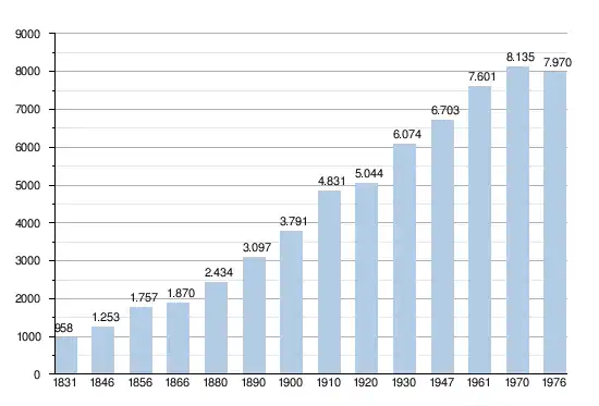 - Sources : INS, Rem. : 1831 jusqu'en 1970 = recensements, 1976 = nombre d'habitants au 31 décembre.