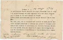 - ↑ (it) G. Lipparini, Prima Esposizione Nazionale dell’Opera e del Lavoro d’Arte nel Palazzo del Parco di San Gallo a Firenze, catalogue d'exposition, Florence, Società delle Belle Arti di Firenze, , p. 20 sous le titre Flavio Bertelli dans La fiorentina Primaverile.