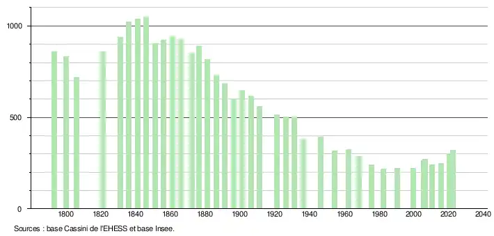 - ↑ Fiches Insee - Populations de référence de la commune pour les années 2006, 2007, 2008, 2009, 2010, 2011, 2012, 2013, 2014, 2015, 2016, 2017, 2018, 2019, 2020, 2021 et 2022.