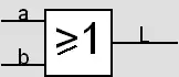 La lampe s'allume si l'on appuie sur seulement « a » , ou sur seulement « b » , ou sur « a » et sur « b ». La fonction « OU » est caractérisée par des interrupteurs NO (normalement ouvert) montés en parallèle.