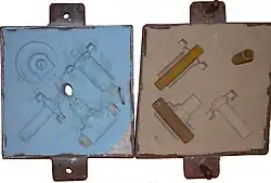 L'outillage de fonderie décrit ci-dessus, à l'exception des équipements de coulée, appartient au client. Il est identifié comme tel, avec un numéro d'identification et des plaques de propriété[3].