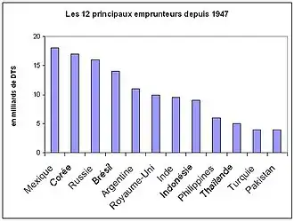 Depuis l'année 2005, les crédits accordés par le FMI se sont réduits drastiquement, du fait de la bonne santé économique du monde et des pays d'Amérique latine en particulier[9].
