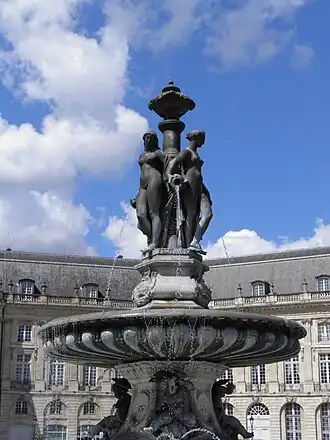 - ↑ « Fontaine des Trois Grâces – place de la Bourse – Bordeaux », sur e-monumen.net (consulté le )