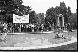 L'œuvre avait été créée à l'occasion d'une exposition provisoire et aurait dû être démontée à la fin de l'événement, ce qui ne fut pas le cas.