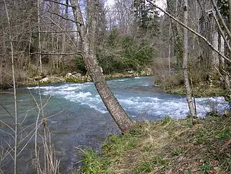 - par le débit mis en jeu : 1 800 litres par seconde ou 1,80 m3/s lors de l'écoulement maximal, les autres sources intermittentes étant de bien moindre ampleur et ne débitant au mieux que quelques litres par seconde.