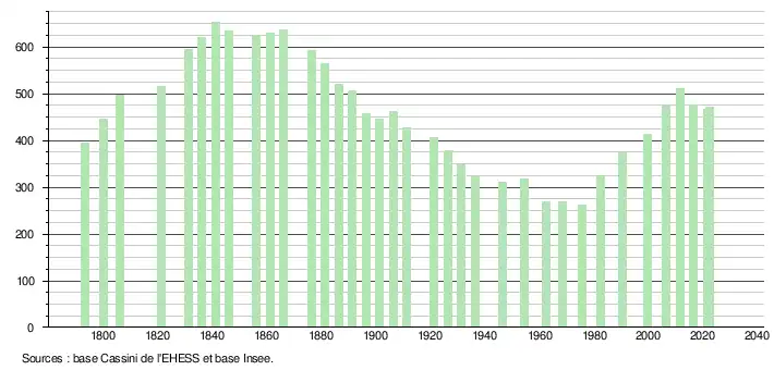 - ↑ Population municipale de référence en vigueur au 1er janvier 2025, millésimée 2022, définie dans les limites territoriales en vigueur au 1er janvier 2024, date de référence statistique : 1er janvier 2022.