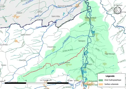 La Forêt traverse 5 communes de l'Allier, soit de l'amont vers l'aval : La Chapelaude, Courçais, Chazemais, Audes, Nassigny.