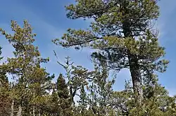 La situation difficile pour la flore donne aux arbres une structure rabougrie. Les sections sur le roc sont dominées par le thuya occidental et le pin blanc, deux arbres pouvant pousser en milieu xérique. L'épinette noire domine dès que le sol devient plus profond. L'épinette noire est alors accompagné du thuya occidental et du pin blanc auquel s'ajoute de sapin baumier et le bouleau à papier. La forêt compte beaucoup de thuya et de pin en dépérissement, ainsi que des arbres morts et des chicots. Les pins blancs ne dépassent pas 20 m de hauteur. Leur diamètre atteint parfois 30 cm. La forêt n'a pas connu de perturbation depuis au moins 265 ans[2].