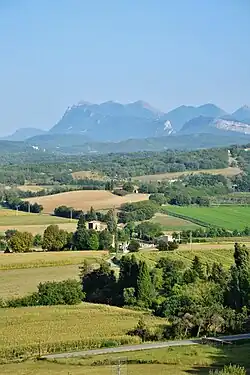 Vue du synclinal de la forêt de Saou dans toute sa longueur depuis la ferme Lagier.