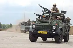 La Force terrestre royale (en) (Koninklijke Landmacht) est la composante principale de l'armée néerlandaise. Elle a pour mission de défendre le territoire, de venir en aide aux personnes sinistrées à la suite d'une catastrophe naturelle et de participer aux missions des organisations internationales dont les Pays-Bas sont membres. La force terrestre royale néerlandaise peut aussi assister les forces de l'ordre dans le maintien de l'ordre interne si cela est nécessaire[9].