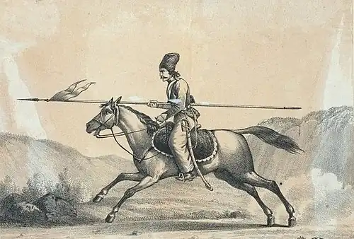 Une autre division prestigieuse des forces de Nader était le Savaran-e Sepah-e Khorasan (سواران سپاه خراسان), qui peut être traduit par les "Cavaliers de l'armée de Khorasan ". Tiré principalement des Gilzai, Abdali, Kurdes et autres éléments tribaux de l'Empire. Les cavaliers afghans (Gilzai et Abdali) étaient parmi les meilleurs de la cavalerie de choc en Asie[12]. La taille de ce corps de cavalerie a fluctué avec le temps, mais à un moment donné, il a été signalé à 70 000 hommes. Des éléments au sein du Savaran-e Sepah-e Khorasan étaient parfois promus par Nader au Savaran-e Saltanati . Les Savaran-e Sepah-e Khorasan ont joué un rôle décisif dans la phase finale de la bataille de Kars au cours de laquelle ils ont participé à une énorme attaque de flanc (40 000 hommes), que Nader a personnellement menée.