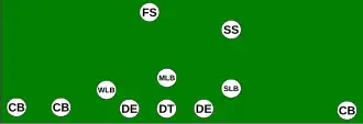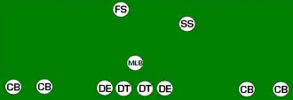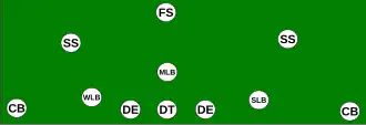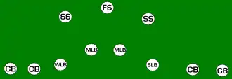 C'est une formation contre la passe et elle est souvent utilisée lorsque l'attaque se compose de 4 wide receivers.