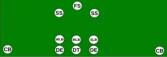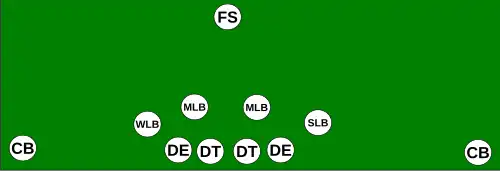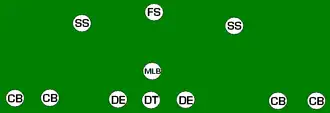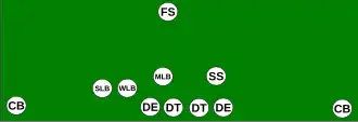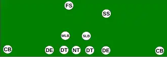 Le nose guard est remplacé par un linebacker supplémentaire lequel occupe la même position mais peu parfois être placé un peu plus en retrait de la ligne.