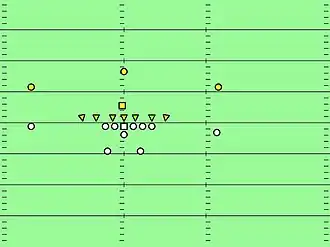 La formation « Seven-man line (en) utilise 7 hommes de ligne placés sur la ligne d'engagement.