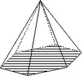 - les « formes ouvertes » dont les faces ne forment pas rigoureusement un volume ; une ou plusieurs faces du volume n'appartenant pas à la forme cristalline. Dans les représentations graphiques, on reconnaît ces formes à l'absence d'une ou plusieurs faces ; absence qui peut être figurée par exemple à l'aide de polygones hachés comme ci-dessous ;