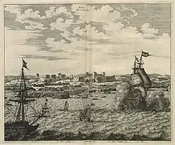 Les Hollandais attaquèrent l'année suivante, en 1625, le fort d'Elmina[4], dont la situation « paraissait répondre à leur projet »[4]. « Leur Vice-Amiral Jean Dirklamb descendit vers l'Pays de Komodo avec 1200 hommes »[4], en partance vers les île d'Indonésie faisant partie des petites îles de la Sonde, mais les défenseurs du Fort ont surpris l'armée Hollandaise au pić de la colline voisine, « avant qu'elle ne fût rassemblée et tuèrent plus de 400 soldats ou matelots »[4], ce qui força les Hollandais à se retirer[4].